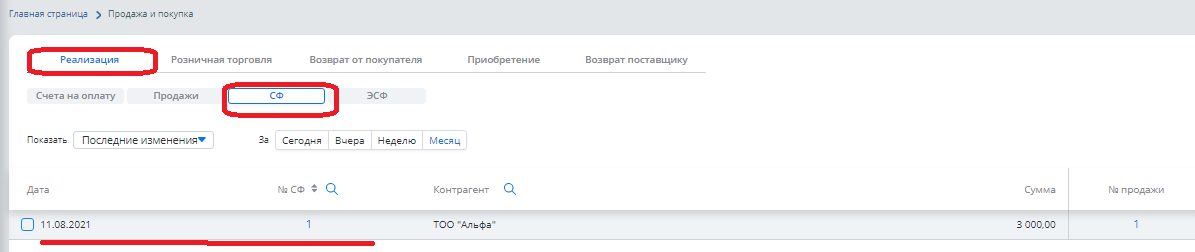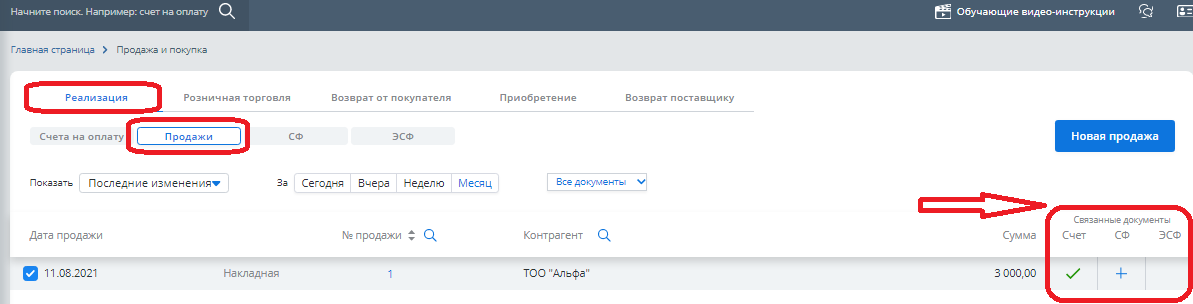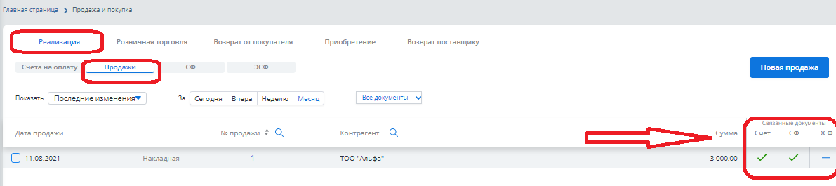 также будет отражено в виде зеленой галочки, что и счет и СФ к