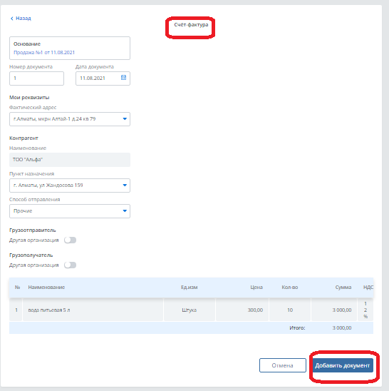 Нажав на «+» под СФ вы автоматически сформируете счет-фактуру.