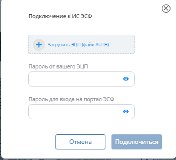 Если вы отправляете ЭСФ из сервиса «Mybuh.kz» в ИС ЭСФ в первый раз, то при нажатии на кнопку «Отправить в ИС ЭСФ» система запросит данные для подключения к ИС ЭСФ: