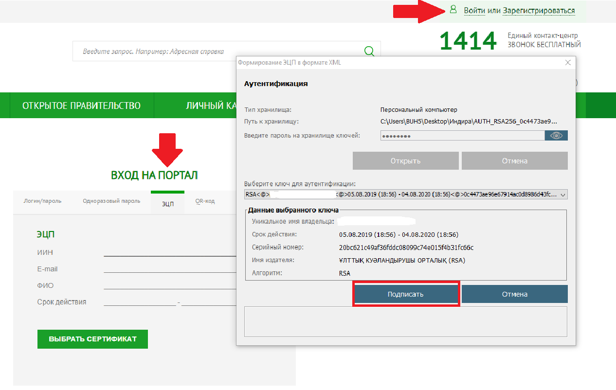 Вход под ключом ЭЦП: